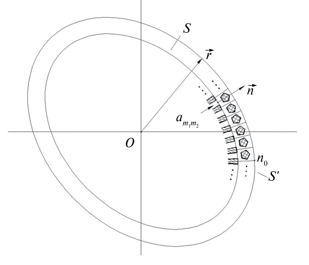 где – вектор нормали в точке расположения (m₁, m₂)-го элемента,
