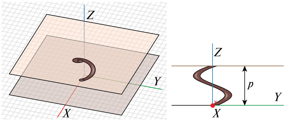 Рис. 1. Модель трехмерной цилиндрической спиральной линии.