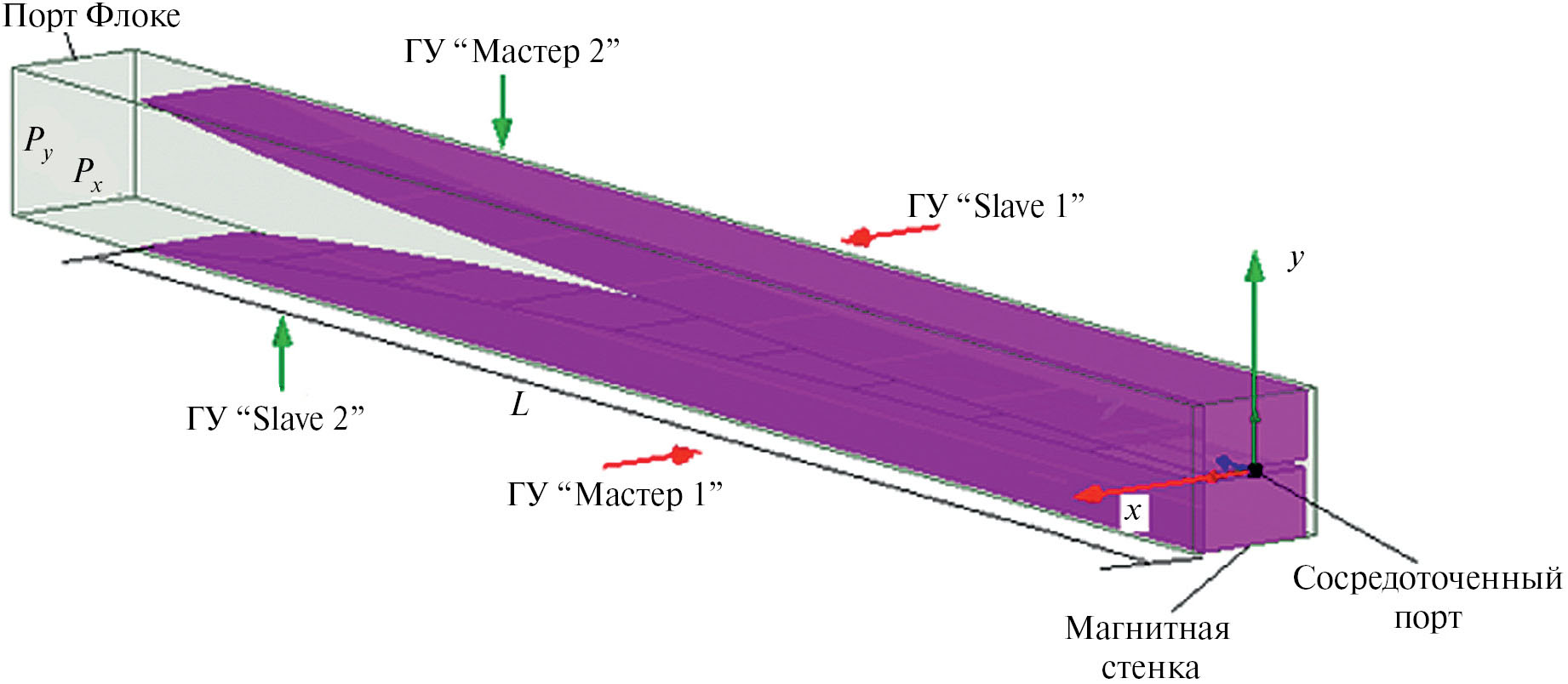 На рис. 1 показана ячейка Флоке в общем виде, она имеет минимум три порта: порт 1 соответствует линии передачи, порты 2 и 3 соответствуют волноводу Флоке, в котором распространяются, как минимум, две волны.