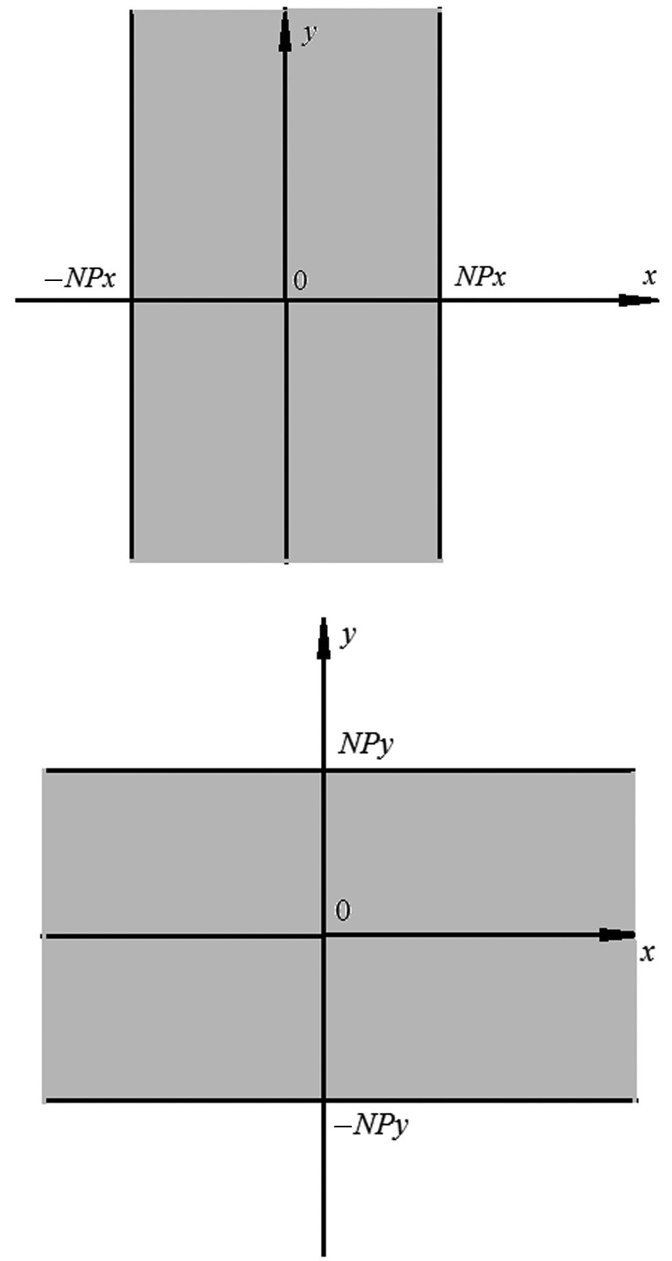где , — заданные постоянные определяющие углы излучения из решетки θ, φ; k — волновое число свободного пространства; n — номер периода по оси 0x; m — номер периода по оси 0y; Px — период решетки по оси 0x; Py — период решетки по оси 0y.