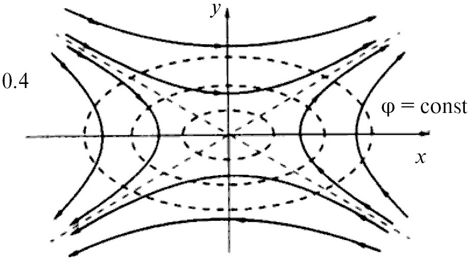 Условия термоэмиссии могут быть выполнены на кривой p = 0; – компоненты скорости. При имеем , так что априорно известны спиральные траектории ; в случае потенциал постоянен на линиях .