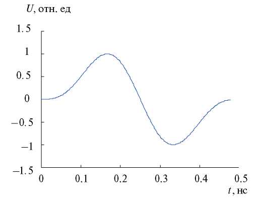 Пусть электрический импульс возбуждения рупора U(t) имеет вид моноцикла (рис. 1). При этом импульс напряженности электрического поля излучения E(t) в его дальней зоне и по оси диаграммы направленности (ДН) антенны имеет вид, представленный на рис. 2.