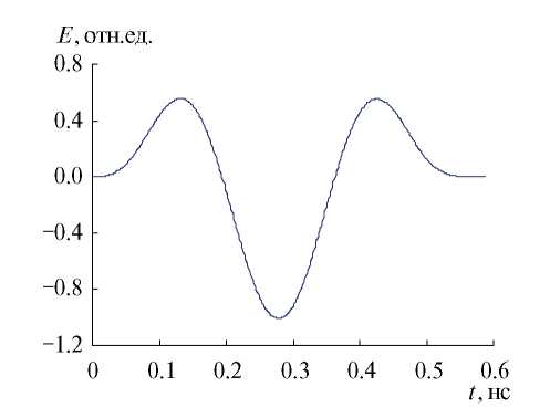 Рис. 2. Напряженность электрического поля импульса излучения.