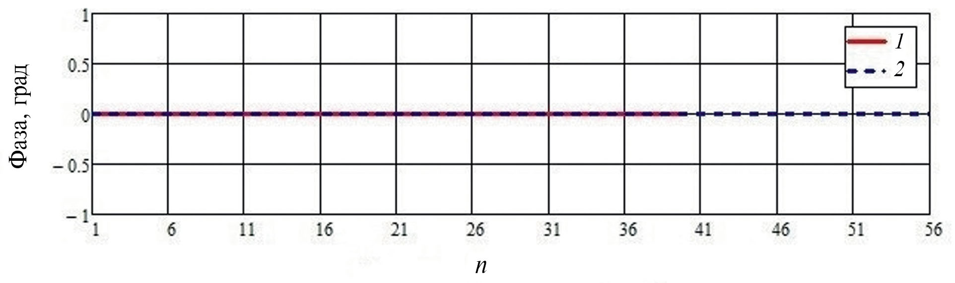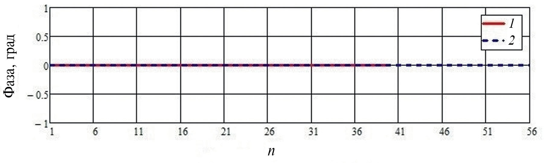 Рис. 3. Фазовое распределение: 1 – азимутальная плоскость, 2 – угломестная плоскость.