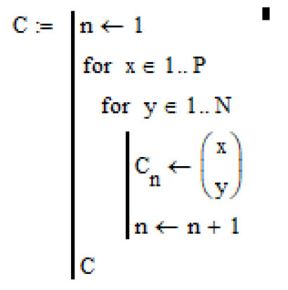 На первом шаге создается пронумерованная матрица элементов АР размерностью [P; N]. Второй шаг заключается в написании алгоритма, обнуляющего случайным образом элементы матрицы [P; N]. Третьим шагом завершается цикл и происходит присвоение нулевого значения ячейке со случайным номером элемента в исходной матрице амплитудных распределений – нулевые значения амплитуды и фазы в излучающем канале (8). Представленный программный код реализован средствами программирования Mathcad: