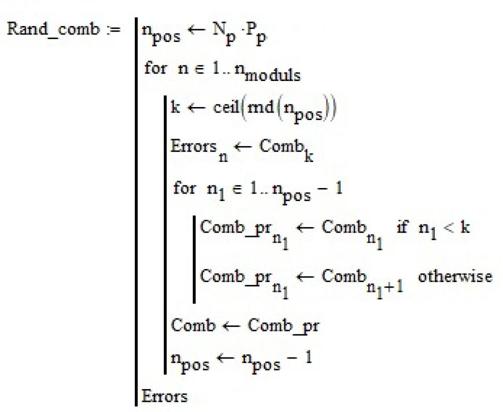 Приведем программный код выхода из строя случайных модулей, реализованный средствами программирования Mathcad: