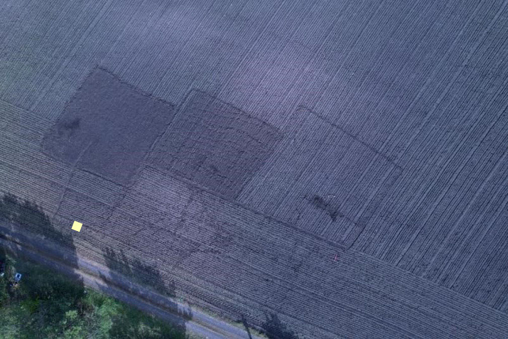 Рис. 2. Вид сверху на три подготовленные площадки с различной степенью шероховатости на тестовом участке 2.