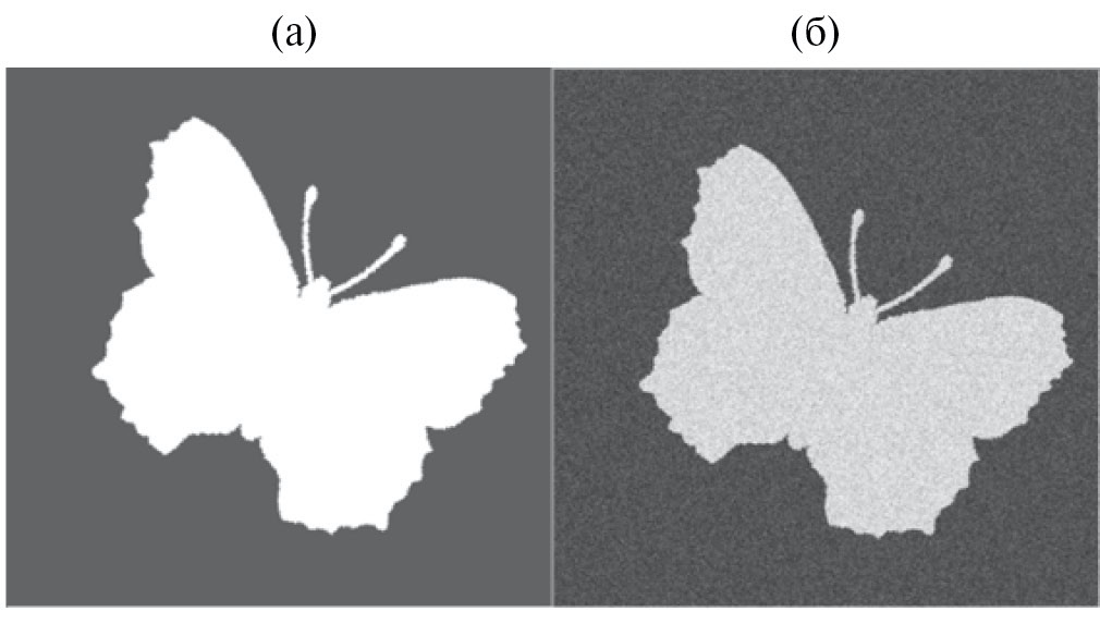 Рис. 1. Представление изображения по выборке отсчетов (выборочное представление): а – оригинальное изображение «butterfly-19» [8], б – выборочное представление размером 10 млн отсчетов.