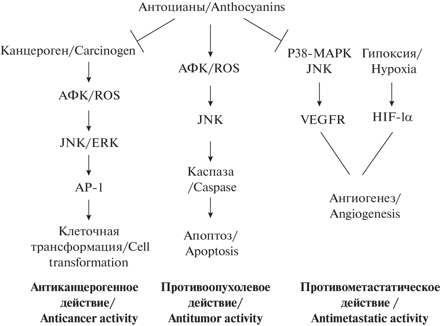 - Hou D.X., Kai K., Li J.J., Lin S., Terahara N., Wakamatsu M., Fujii M., Young M.R., Colburn N. 2004. Anthocyanidins inhibit activator protein 1 activity and cell transformation: structure-activity relationship and molecular mechanisms. – Carcinogenesis. 25(1): 29–36. https://doi.org/10.1093/carcin/bgg184