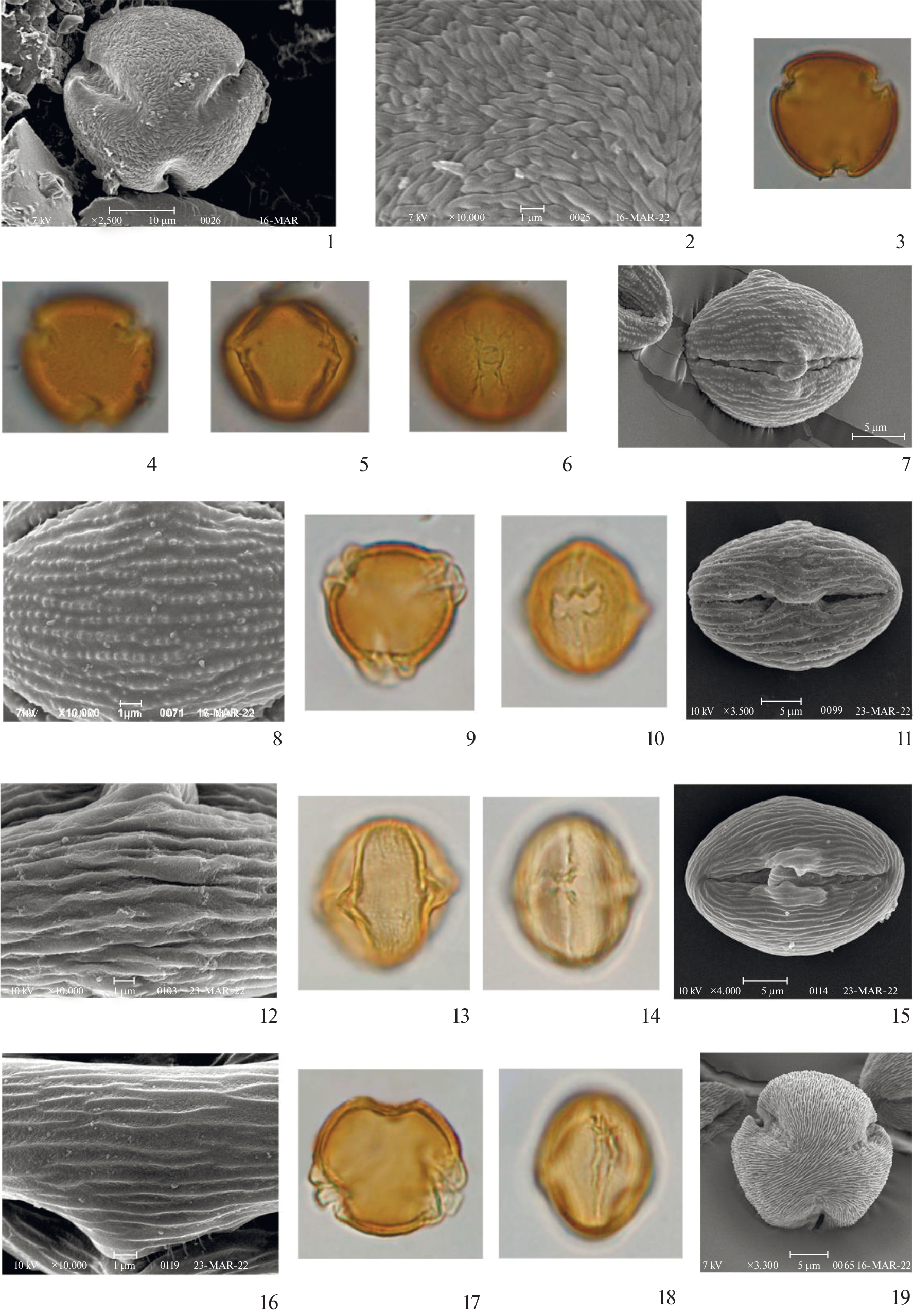С помощью светового и сканирующего электронного микроскопов изучена морфология пыльцы 11 дикорастущих и интродуцированных медоносных видов растений, широко распространенных в Ленинградской области и относящихся к 9 родам семейства Rosaceae. Установлено, что пыльцевые зерна всех исследованных видов средних размеров, 25–40 мкм, изредка немного меньше, у большинства 3-бороздно-оровые, у Sanguisorba officinalis L. 6-бороздно-оровые, со струйчатой или производной от нее скульптурой. В дисперсном состоянии пыльца легко определяется до семейства и часто до рода. Однако представители родов Rosa и Rubus по пыльце различаются плохо. Полученные данные позволят упростить производителям меда ботаническое определение пыльцы представителей семейства Rosaceae в тестируемых образцах меда.