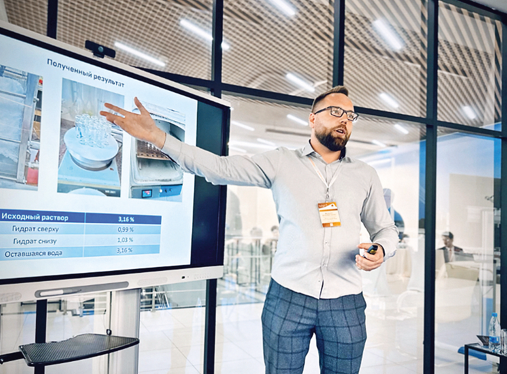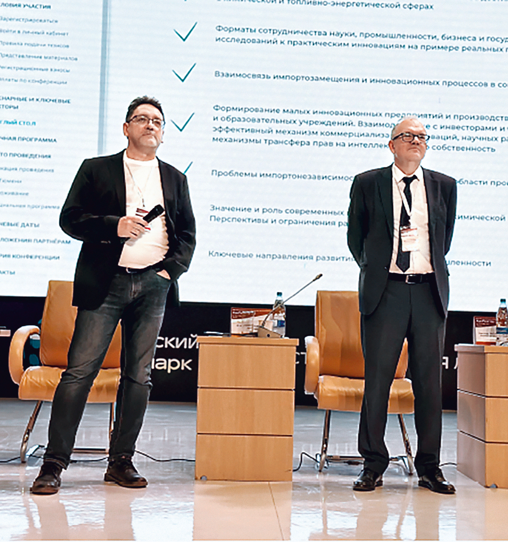 Ярким событием программы конференции стало проведение Круглого стола “Эффективное взаимодействие науки и практики как основа достижения технологического суверенитета в химической и топливно-энергетической сферах”, на котором обсуждалась инновационная деятельность, направленная на использование и коммерциализацию результатов научных исследований и разработок с последующим их внедрением, реализацией на рынках. Модераторами Круглого стола выступили д.т.н. А.В. Клейменов (ПАО “Газпром нефть”, Санкт-Петербург) и д.т.н. А.Н. Загоруйко (Институт катализа им. Г.К. Борескова СО РАН, Новосибирск).