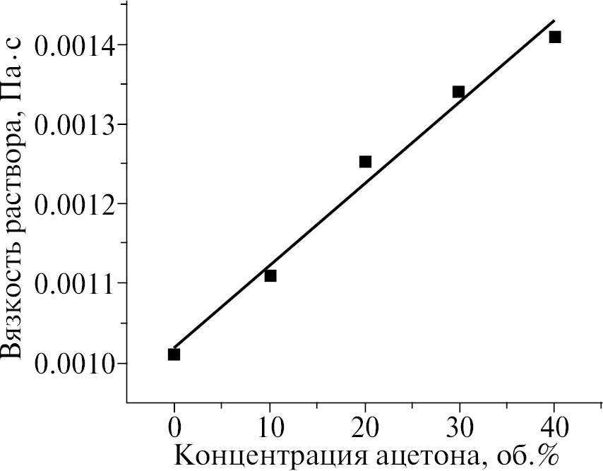 Использовали магнитную мешалку с минимальным количеством оборотов, что эквивалентно эффективности перемешивания в смесительной ячейке. Проводили гомогенизацию двухфазной системы “ацетон–вода” в щелочной среде. В программе вычислительного моделирования определяли время пребывания реакционной среды в различном количестве ячеек. Время перемешивания в магнитной мешалке варьировали эквивалентно расчетным данным. Далее определяли вязкость смеси на капиллярном вискозиметре ВПЖ-2. По достижении необходимой вязкости перемешивание считали законченным.