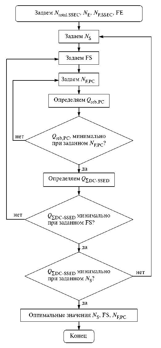 Рис. 4. Алгоритм оптимизации двухколонных схем ЭР, включающих экстрактивную колонну с боковым отбором.