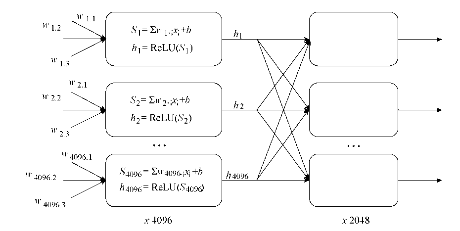 где – вектор выходных значений слоя номер l; – вектор выходных значений слоя номер l-1; – матрица весов слоя l; – вектор смещений слоя l; аргументом следующего слоя будет являться вектор ; n, m — размерности соответствующих векторов и матриц.
