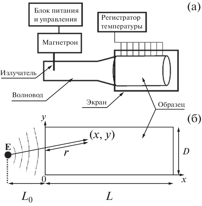 Физическое и математическое моделирование распределения температуры по длине нефтематеринской породы при микроволновом облучении