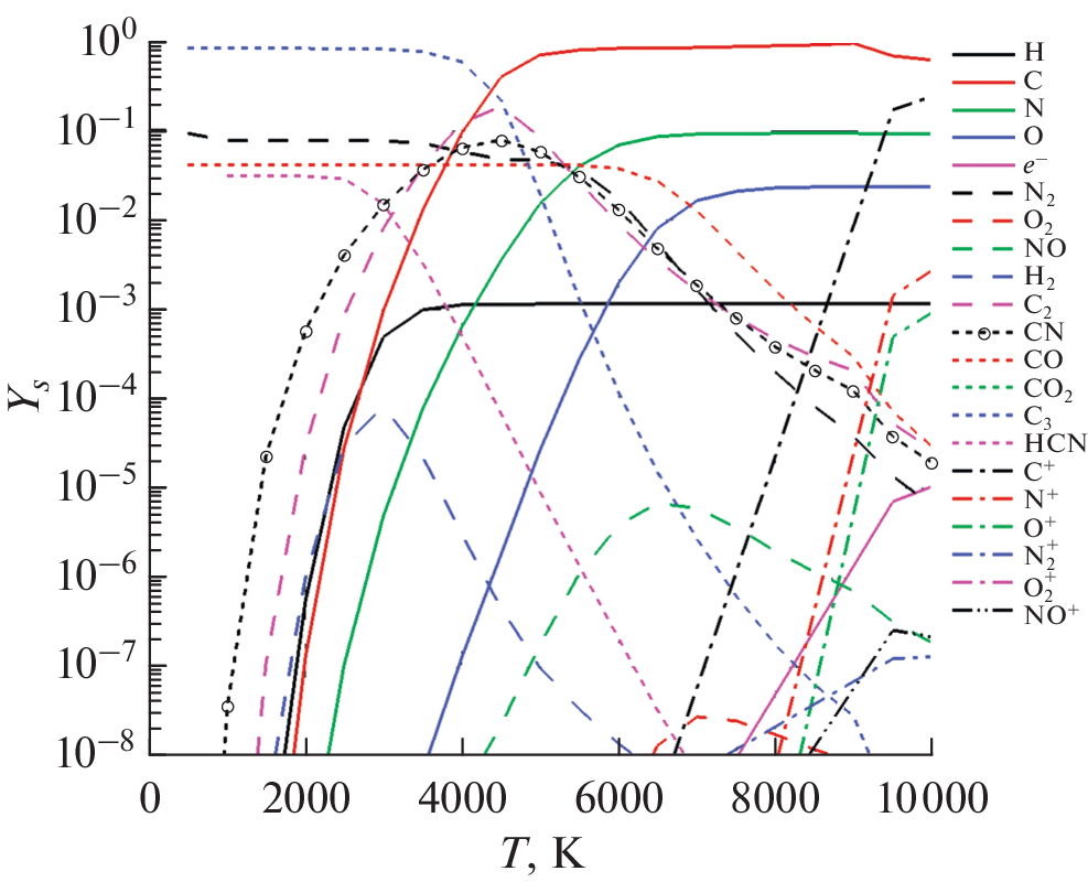 Физико-химические характеристики плазменного потока, окружающего возвращаемые космические аппараты при входе в атмосферу Земли с орбитальной скоростью