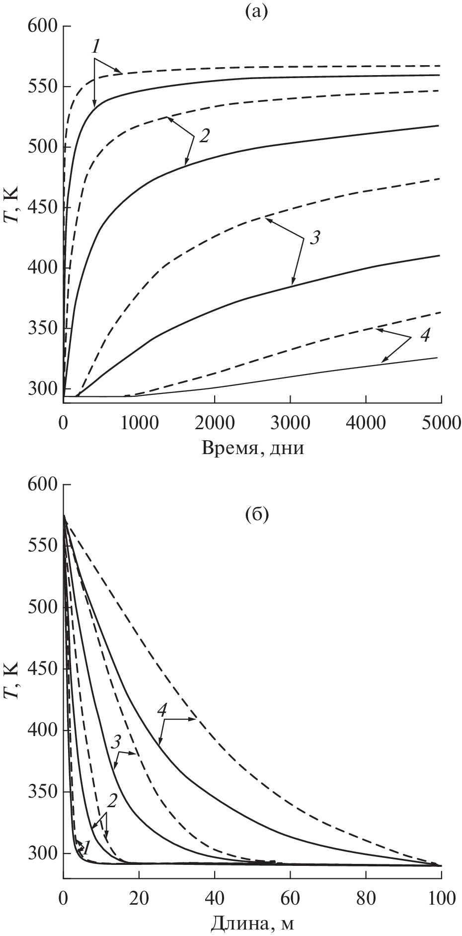 Приведены новые экспериментальные термодинамически согласованные данные температурной зависимости температуропроводности, теплоемкости и рассчитанной на их основе теплопроводности (λ = аρСР) черного угля. Экспериментально исследовано влияние термического разложения (пиролиза) угля вблизи 700 К, испарения влаги и других легко летучих компонентов угля при 380 К на поведение теплоемкости и теплопроводности. Измерения проводились бесконтактным методом лазерной вспышки (Netzsch LFA 457) в интервале температур 301‒823 К. По измеренным значениям температуропроводности черного угля исследован процесс переноса тепла в угольном пласте. Показано, что учет температурной зависимости температуропроводности среды при решении уравнения теплопереноса существенно влияет на распределение температуры в пласте.