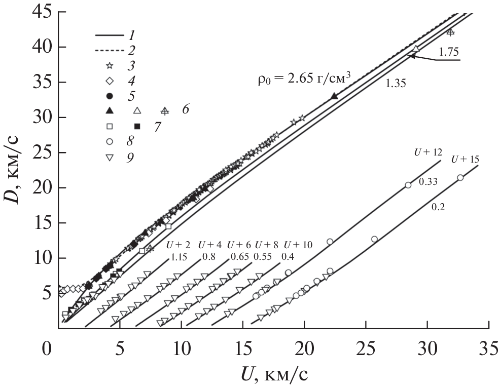 - Knudson M.D., Desjarlais M.P. Shock Compression of Quartz to 1.6 TPa: Redefining a Pressure Standard // Phys. Rev. Lett. 2009. V. 103. № 22. P. 225501.