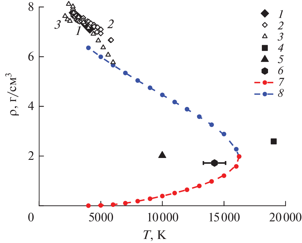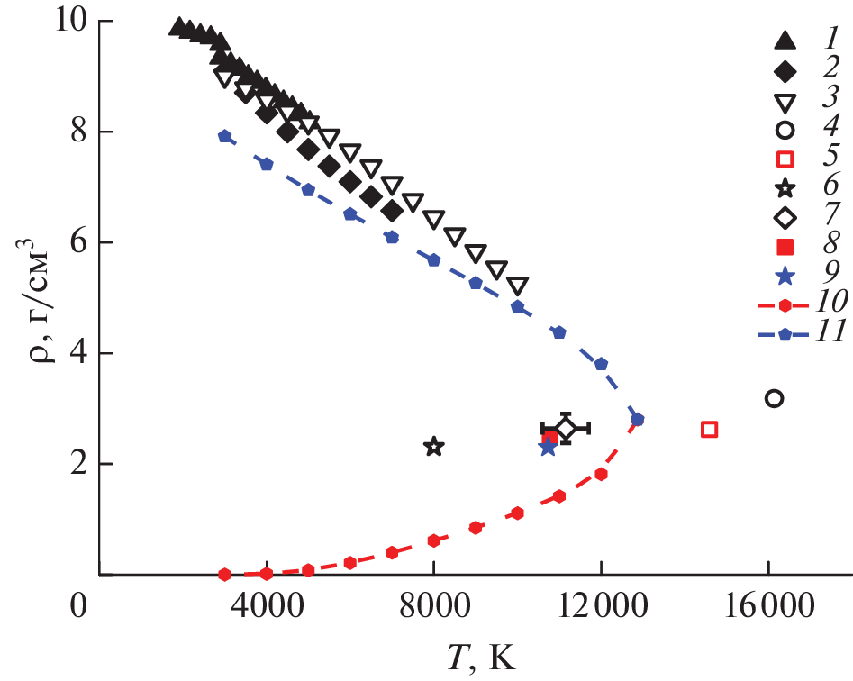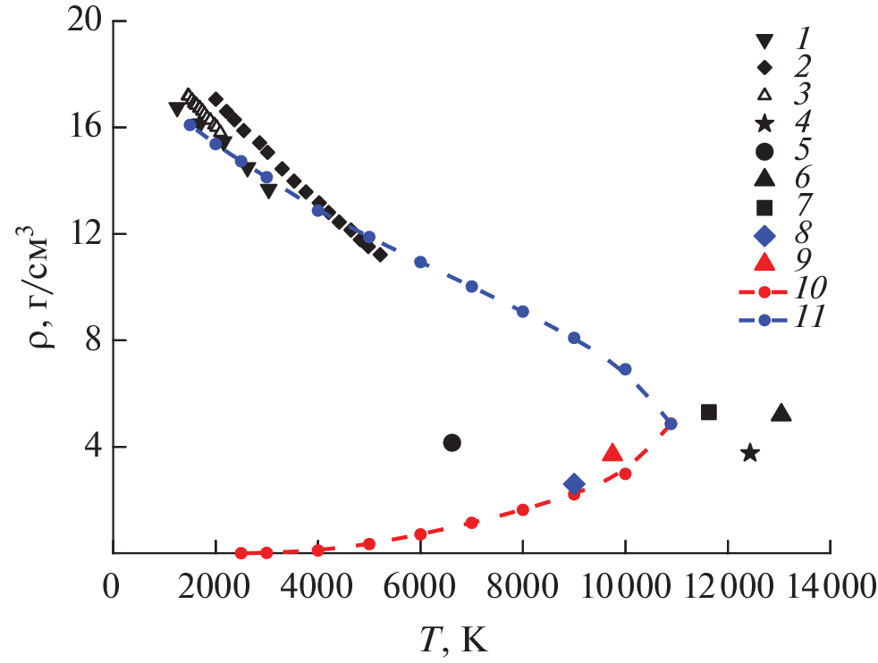 - Minakov D.V., Paramonov M.A., Levashov P.R. Consistent Interpretation of Experimental Data for Expanded Liquid Tungsten near the Liquid‒Gas Coexistence Curve // Phys. Rev. B. 2018. V. 97. P. 024205.