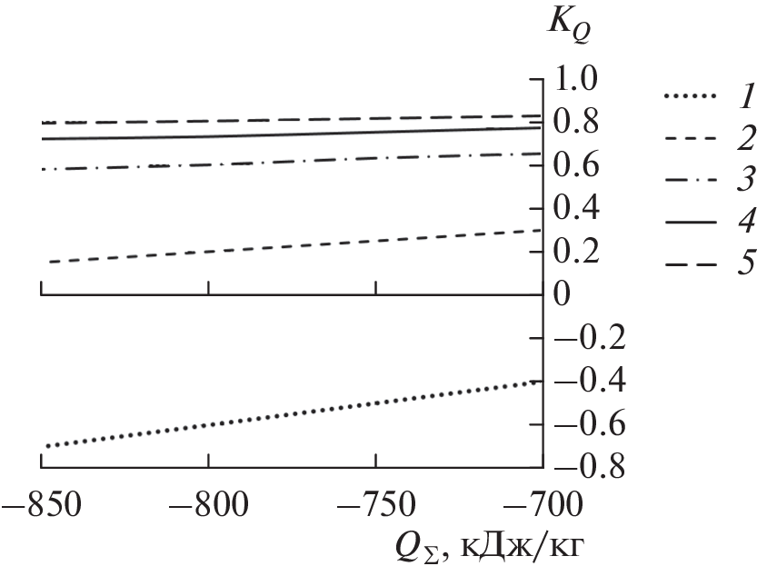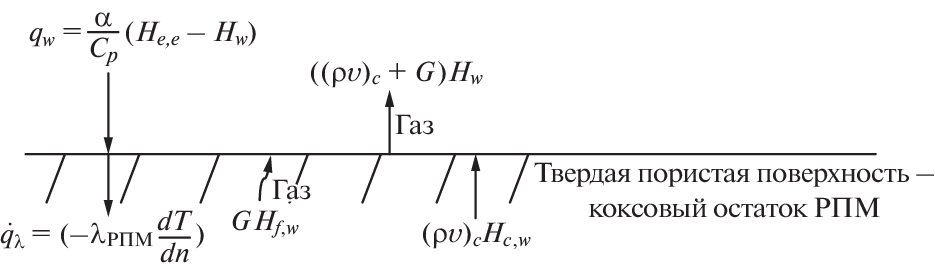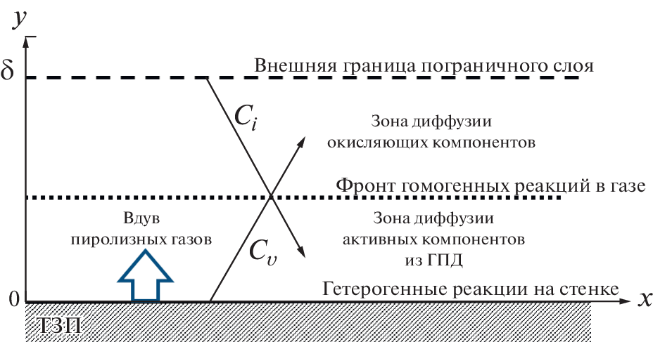Предложен метод анализа роли отдельных химических реакций на тепломассообмен в реагирующем пограничном слое, и проведены оценки влияния тепловых эффектов на обобщенный коэффициент тепломассообмена. Установлено, что наличие эндотермических реакций в пограничном слое существенно влияет на обобщенный коэффициент тепломассообмена. Влияние тепловых эффектов гомогенных реакций внутри пограничного слоя на конвективный тепловой поток \({{\dot {q}}_{\lambda }}\) эквивалентно учету теплоты этих реакций на поверхности теплозащитного покрытия, т.е. на поверхности прококсованного слоя.