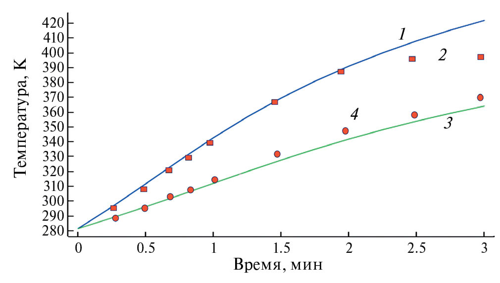 6. Fig. 5. Comparison of the obtained temperature distributions (1, 3) with the data [38]: 1, 2 – 7 mm; 3, 4 – 9.5 mm.