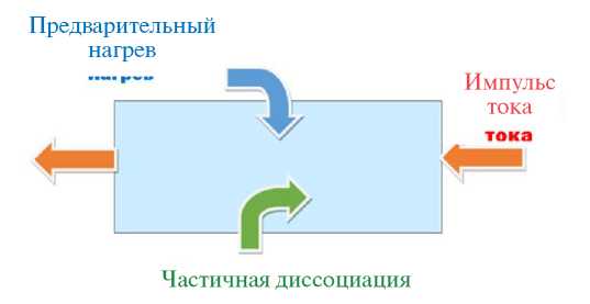 При моделировании эффектов активации путем предварительной диссоциации первая стадия не рассматривается, а принимается, что ее воздействие сводится лишь к модификации начального состава, когда определенная часть молекулярных компонентов замещается атомарными без нарушения элементного состава исходной смеси. Подобный подход используется и при формализации термической активации, когда неявный процесс термической активации отражается лишь в повышении начальной температуры и давления в начальных условиях при расчетах кинетики воспламенения. И в том, и в другом случаях энергетическая цена активации определяется по изменению энтальпии топливно-воздушной смеси.