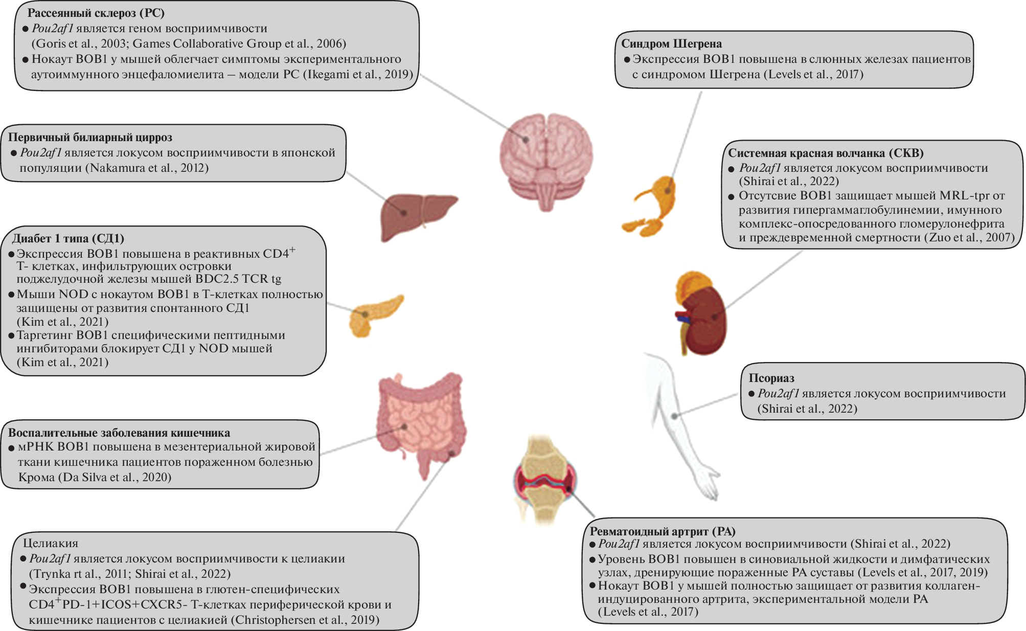 - Yeremenko N., Danger R., Baeten D., Tomilin A., Brouard S. 2021. Transcriptional regulator BOB.1: Molecular mechanisms and emerging role in chronic inflammation and autoimmunity. Autoimmun. Rev. V. 20. P. 102833.