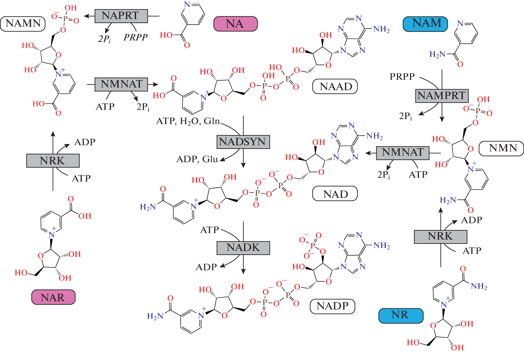 - Yang Y., Sauve A.A. 2016. NAD(+) metabolism: bioenergetics, signaling and manipulation for therapy. Biochim. Biophys. Acta. V. 1864. P. 1787.