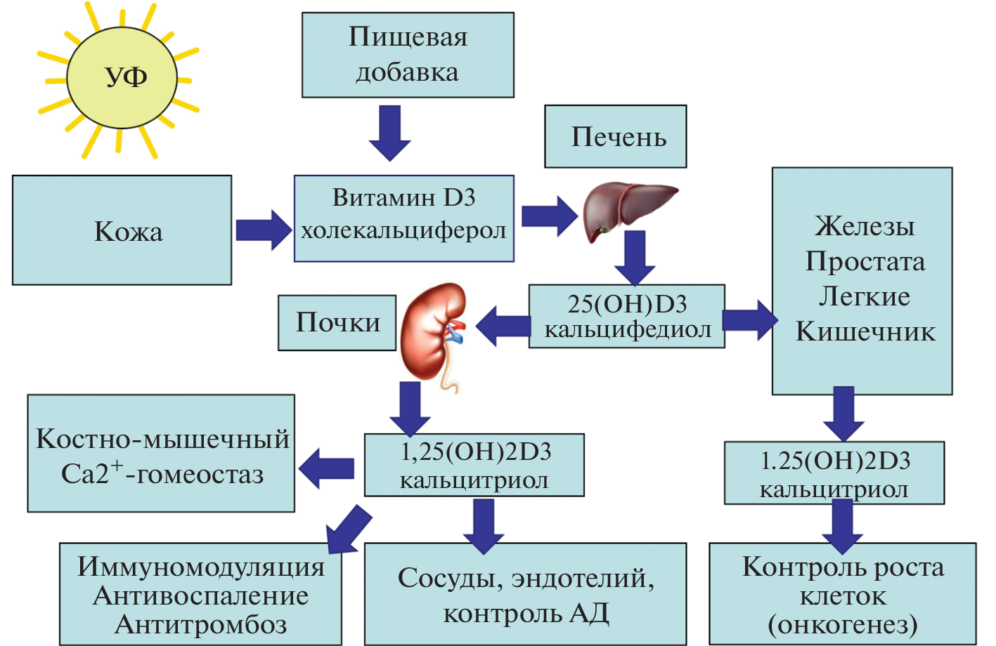 - Pilz S., Verheyen N., Grübler M.R. et al. Vitamin D and cardiovascular disease prevention // Nat. Rev. Cardiol. 2016. V. 13 (7). P. 404–417. https://doi.org/10.1038/nrcardio.2016.73