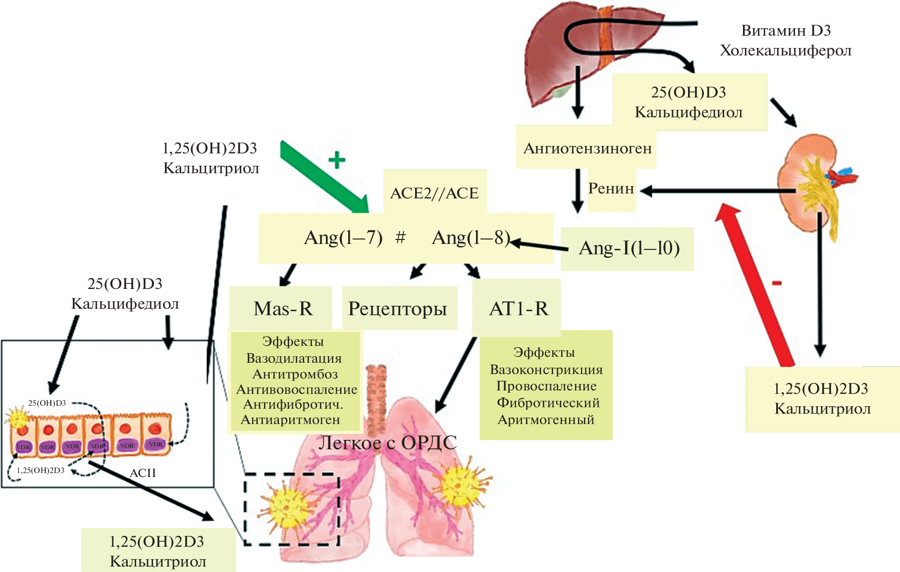 - Li Y.C., Kong J., Wei M. et al. 1,25-Dihydroxyvitamin D3 is a negative endocrine regulator of the renin-angiotensin system // J. Clin. Invest. 2002. V. 110. P. 229–238.