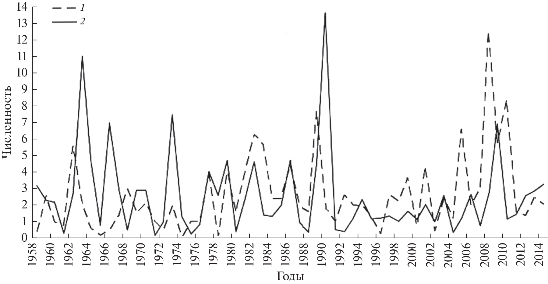 Summing up the results of the long-term studies of population ecology and dynamics of small mammals for more than half a century (1966–2018). Small mammals are involved in the formation and functioning of natural-focil of human vector-borne diseases common in the North-Eastern Ladoga region. Encephalitis and tularemia circulate intensively in the Ladoga region under conditions of intensive anthropogenic transformation of taiga ecosystems. Local landscapes belong to the subzone of the middle taiga forests. Most of the studied species of small mammals are located in the northern periphery of this area. Here representatives of the native taiga fauna of Micromammalia constantly experience powerful anthropogenic pressure, which leads to a decrease in their abundance and correlation of the species. Of the total amount of 22 species of small mammals collected here, Sorex araneus and Myodes glareolus dominate. Next, the species prevalent (according to the degree of predominant species) in the counts are Microtus agrestis, Sorex minutus and Sorex caecutiens. Other species are relatively rare and appear in smaller numbers. Myodes glareolus has main role in the feeding of ticks and, accordingly, in the circulation of infections in nature, the differentiated contribution of individual intrapopulation groups in maintaining the number of vectors and the activity of pathogens. Shrews are important for the development of the larval stages of the tick. In the research area, were recorded total index of trap catch of abundance of small animals with trap lines from 0.34 to 18.5 individuals per 100 snap traps-nights (average of 7.8 ind.) and with pitfall traps recorded from 2.7 to 25.4 individuals per 10 ditch-nights (average of 14 ind.). This indicates that the studied area has smaller amount of mammals compared to other regions in Southern Europe. Nevertheless, the studies determine a rather tense epidemic situation in the studied area. Population of small mammals of boreal ecosystem steadily affect the mass feeding of carriers of natural focal infections.