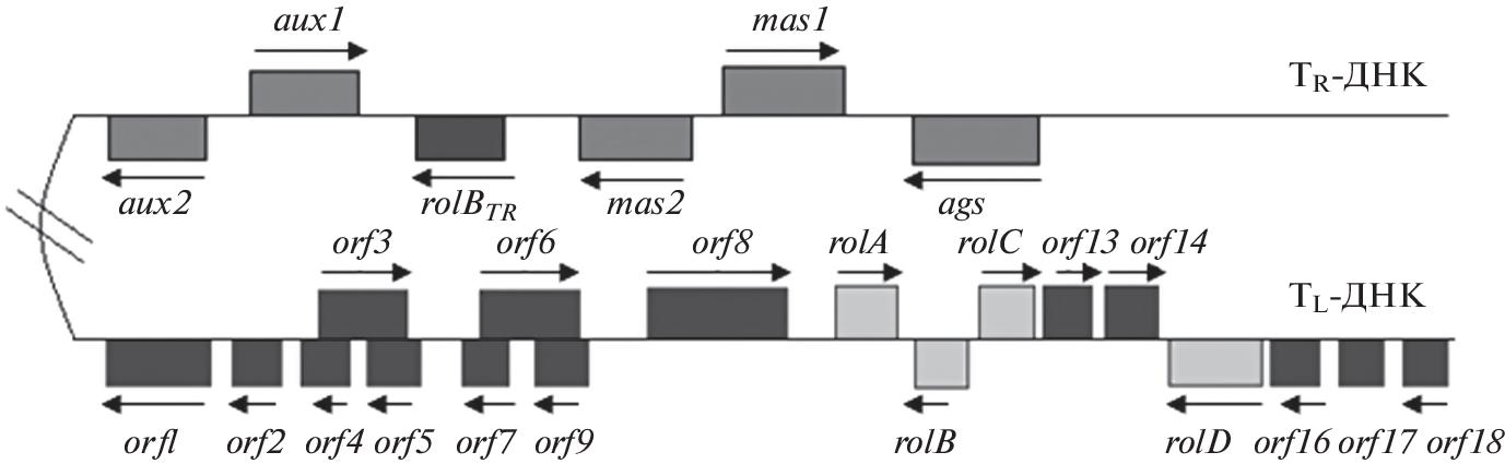 - Schmulling T., Fladung M., Grossmann K., Schell J. Hormonal content and sensitivity of transgenic tobacco and potato plants expressing single rol genes of Agrobacterium rhizogenes T-DNA // Plant J. 1993. V. 3. P. 371–382.