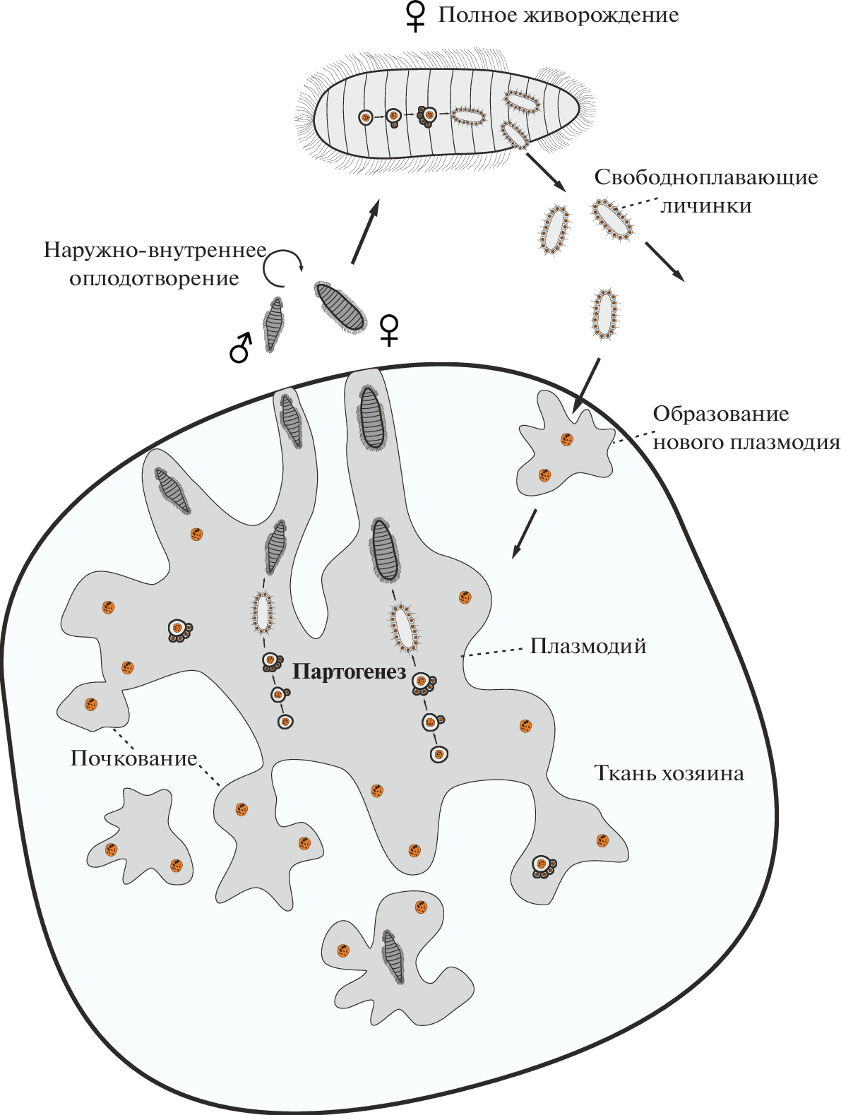 - Gruhl A., Okamura B. Tissue characteristics and development in Myxozoa // Myxozoan evolution, ecology and development / Eds B. Okamura, A. Gruhl, J. Bartholomew. Cham: Springer, 2015. P. 155–174. https://doi.org/10.1007/978-3-319-14753-6_9