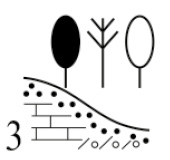 Примечание: типы локальных местоположений: Э — элювиальное; ТА — трансэлювиальное; Т — транзитное; ТА — трансаккумулятивное. Степень увлажнения эдафотопа: К — ксероморфное; КМ — мезоксероморфное; КМ — ксеромезоморфное; М — мезоморфное; МГ — мезогидроморфное.