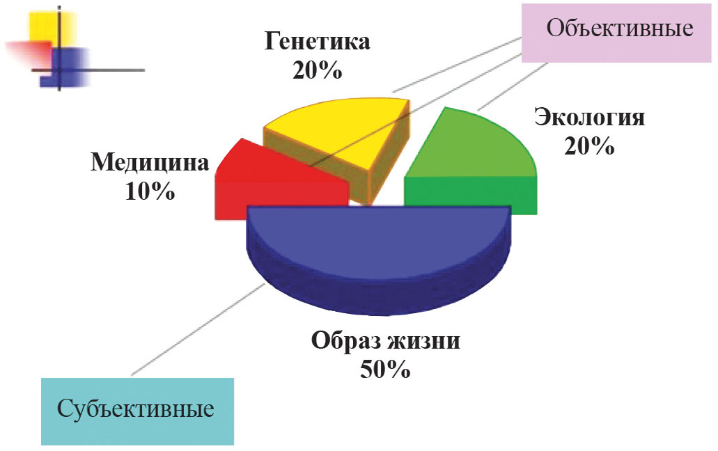 Согласно мнению экспертов-биоаналитиков, вклад наследственности (геномного фактора) как ключевой детерминанты в формирование здоровья достигает порядка 20%! На долю экологических факторов, которые также не подвластны коррекции силами медиков, приходится 10–20%. Возможности существующей медицины в стратегических секторах охраны здоровья и здоровьесбережения не превышают 10%.