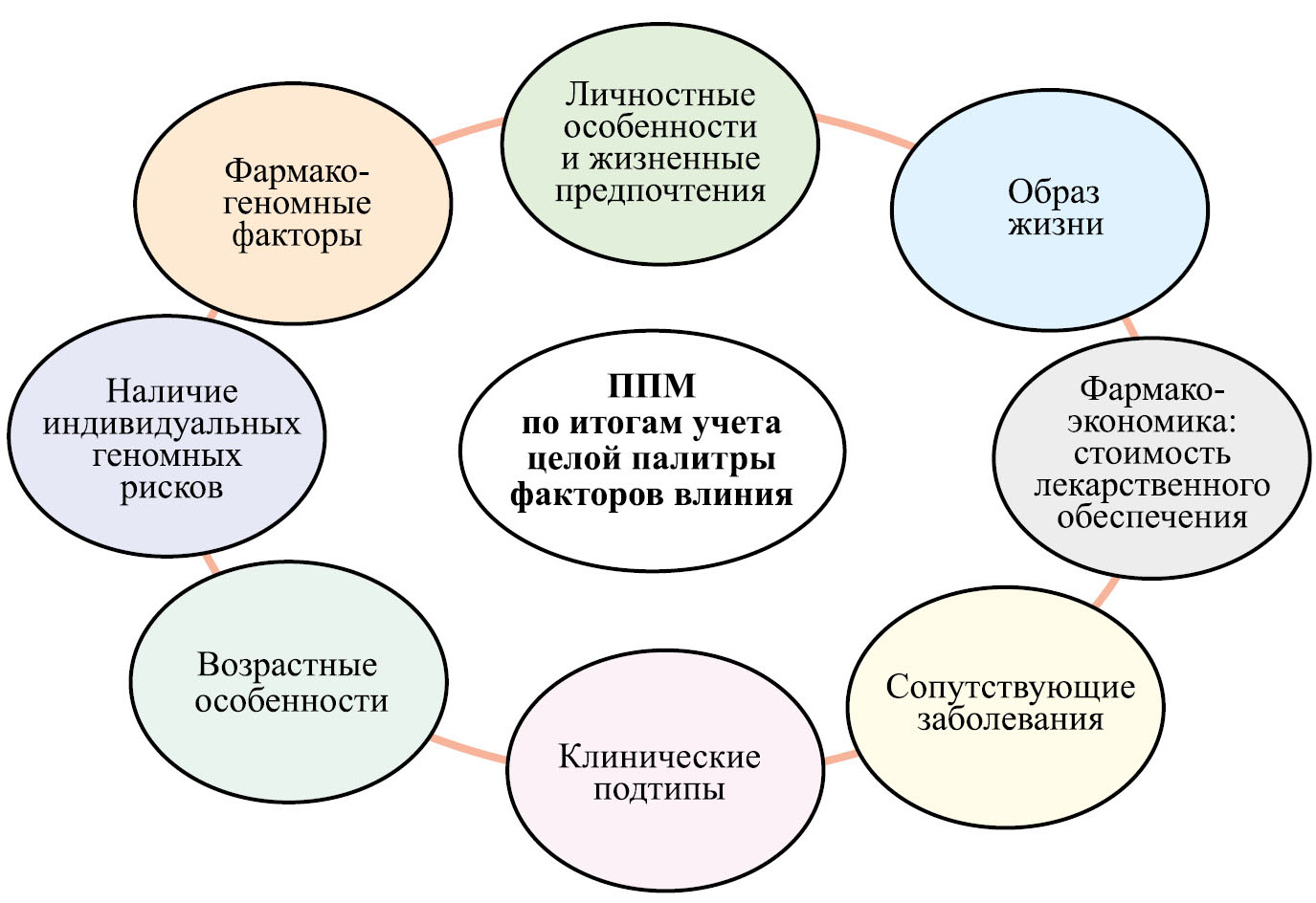 В этой связи следует подчеркнуть, что адаптация медицинского обслуживания к уникальному геномному ландшафту (генотипу) каждого индивидуума в отдельности – одна из ключевых идей ППМ. Соответственно, именно ППМ становится стратегическим объектом внимания профессионалов, ориентируя национальные аудитории на транснациональные тренды, ранее гражданам в большинстве стран не особо привычные, а именно: на профилактику и предупреждение заболеваний, взаимоувязанных с оценками совокупных рисков и угроз, и на активное продвижение здорового образа жизни.