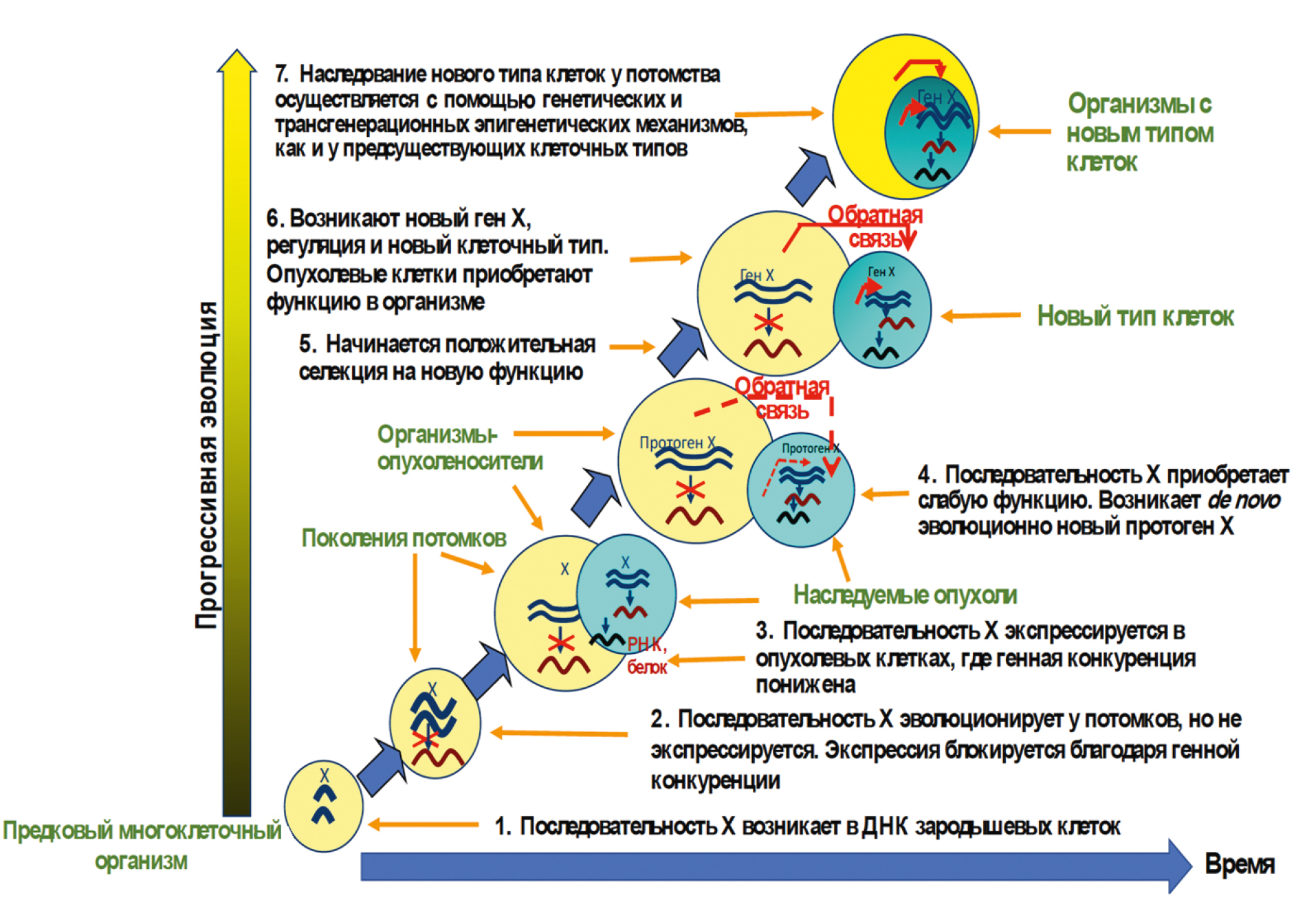 IV. Гипотеза эволюции путем неофункционализации наследуемых опухолей (основная гипотеза)