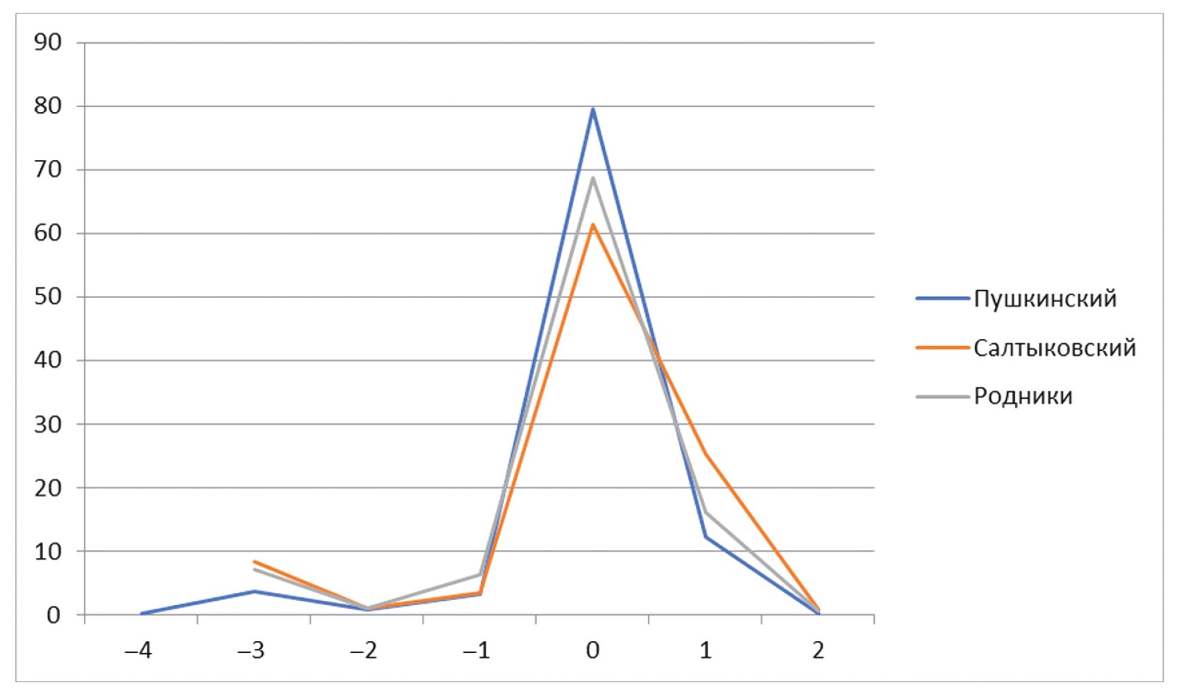 Пушкинский | 203 | 12.6↓ | 1282 | 79.6↑ | 126 | 7.8↓ | 1611 |