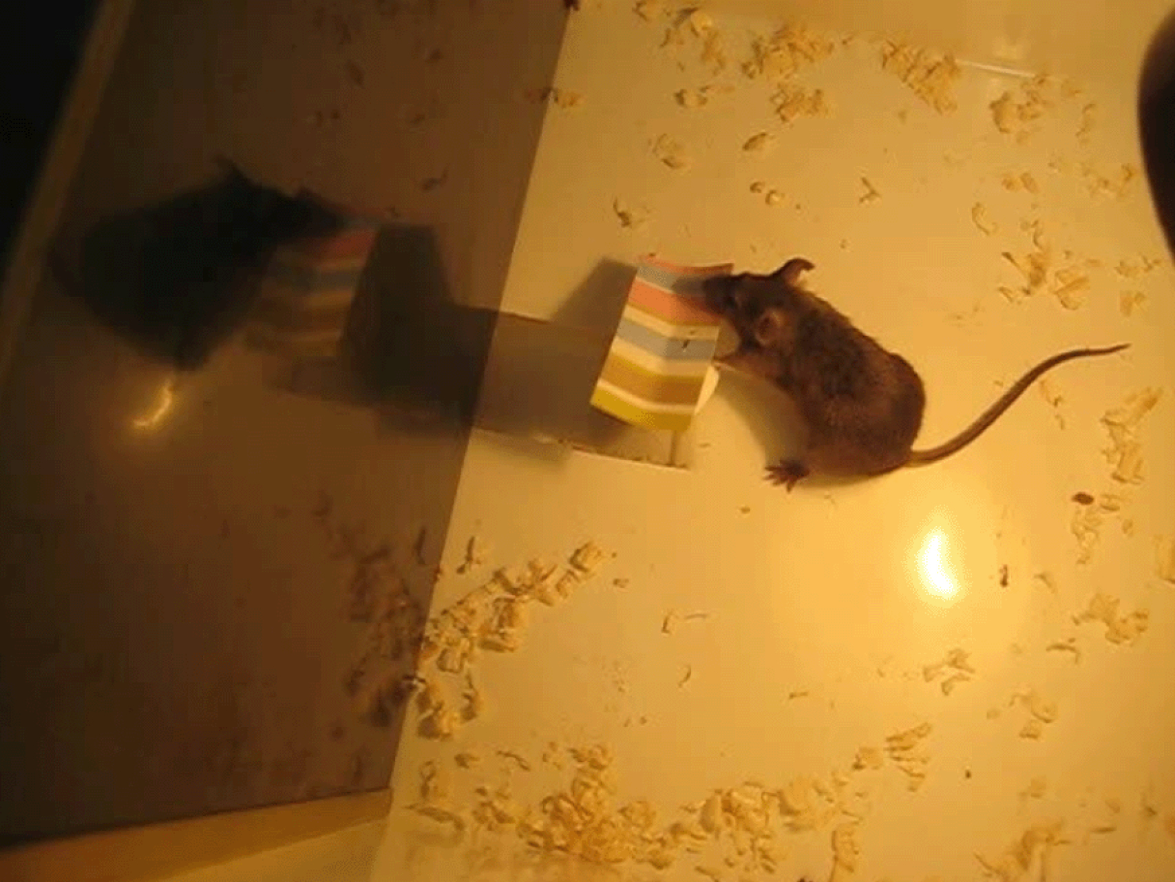 Рис. 1. Мышь вынимает пробку, закрывающую лаз в темное отделение экспериментальной камеры.
