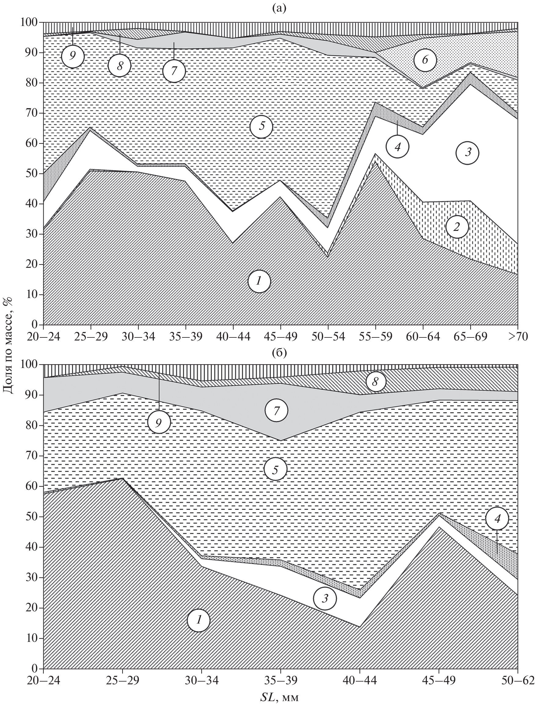 Приведена характеристика размерно-возрастной и половой структур аборигенных в Донском бассейне звёздчатой Benthophilus stellatus и донской B. durrelli пуголовок. Самки донской пуголовки созревают при длине около 35, звёздчатой – 50 мм. Для основной части (~74%) производителей донской пуголовки характерен единовременный нерест, звёздчатая откладывает три порции икры. Продолжительность периода размножения у этих видов составляет около 3.5 и 1.5 мес. соответственно, а индивидуальная абсолютная плодовитость самок – 0.2–0.6 и 1–3 тыс. икринок. Все производители донской пуголовки погибают после нереста на втором году жизни, незначительная часть особей звёздчатой пуголовки доживает до третьего года. Оценены спектры питания, размерная и биотопическая изменчивость, степень пищевого сходства, избирательность кормовых организмов у обоих видов. Для них характерны сходство питания и высокая пищевая пластичность. В Цимлянском водохранилище у пуголовок основными кормовыми объектами являются моллюск Lithoglyphus naticoides и личинки комаров, в нижнем течении р. Дон – различные ракообразные. Обосновывается предположение о том, что в настоящее время в водохранилищах Волжского каскада обитает три вида пуголовок (донская, звёздчатая и Махмудбекова B. mahmudbejovi). Донская пуголовка расселилась и в нижнем течении р. Волга. Её ареал помимо нативного Азовского и новоприобретённого Волжского бассейнов, по-видимому, включает в себя и Черноморский.