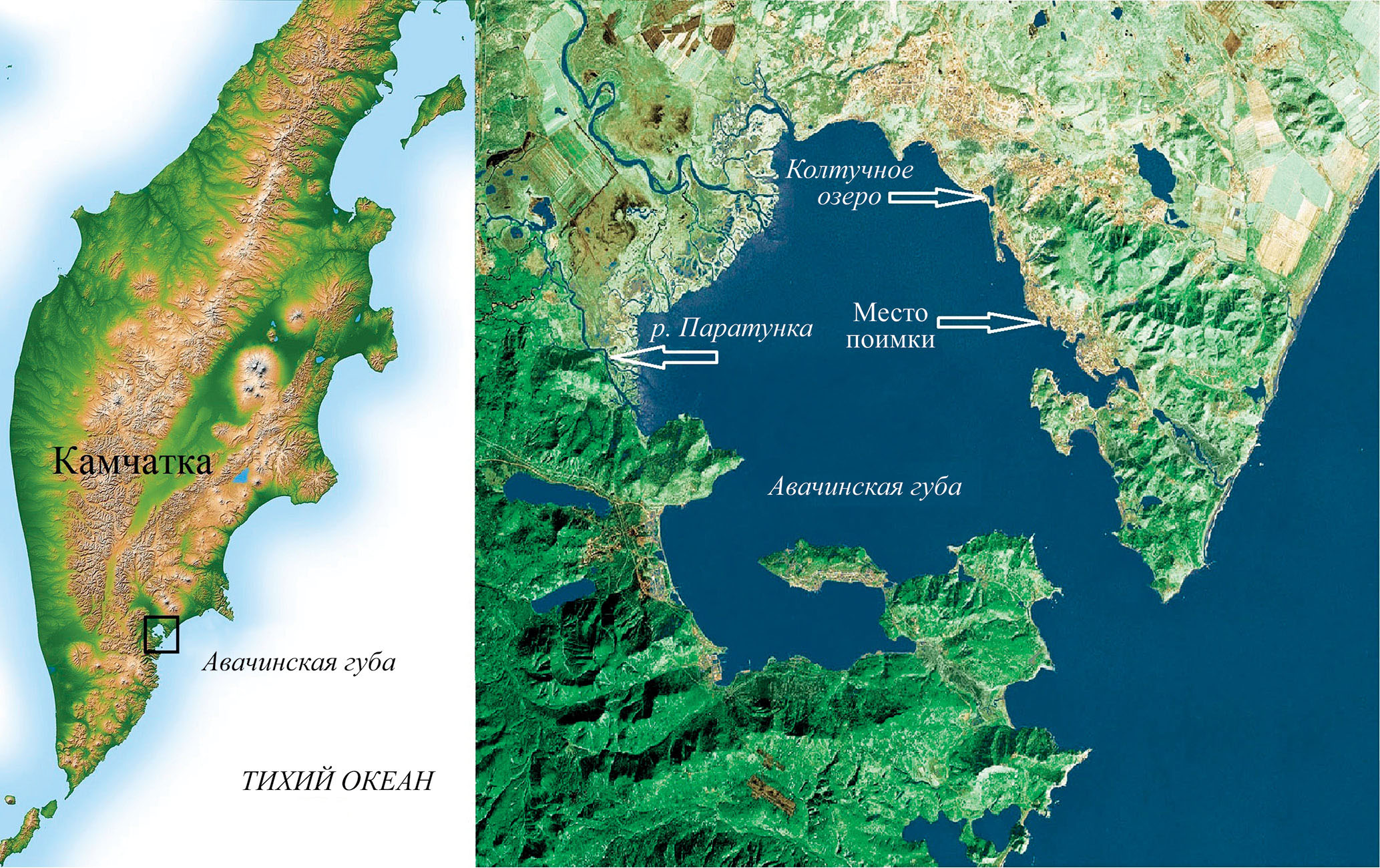 Пойманный в Авачинской губе экземпляр серебряного карася, вероятно, попал туда из оз. Култучное, так как место его поимки находится на расстоянии всего 5 км от протоки, соединяющей озеро с губой (рис. 2). Пока неясно, в каком возрасте серебряный карась в Авачинскую губу попал и как долго он там обитал.