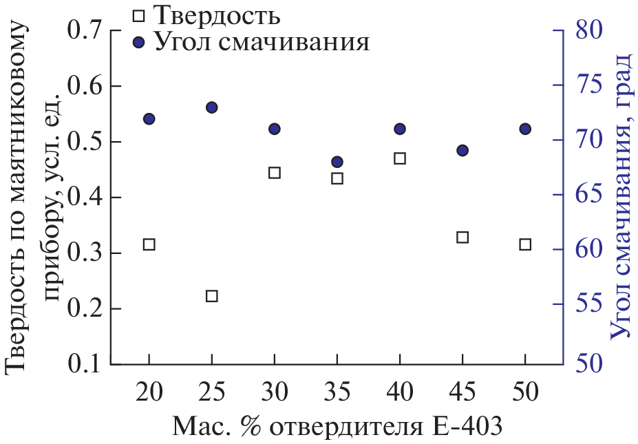 The effect of the hardening conditions and the nature of the filler and the organic modifier on the physical and mechanical properties of coatings based on a cycloaliphatic epoxy matrix filled with muscovite mica and TiO2 has been studied. The dependence of the values of hardness and the wetting angle on the amount of polyetheramine hardener (20–50 wt %) has been presented. The effect of the nature of the hardener and additives of ground granite and SiO2 microspheres on the values of hardness, adhesion, and impact and bending strengths of the epoxy coating has been studied. Four optimal compositions of epoxy coatings for the study of thermal stability and anticorrosive properties have been determined. It has been shown that coatings containing oligoethoxysiloxanes as organic modifiers are characterized by low degree of corrosion protection.