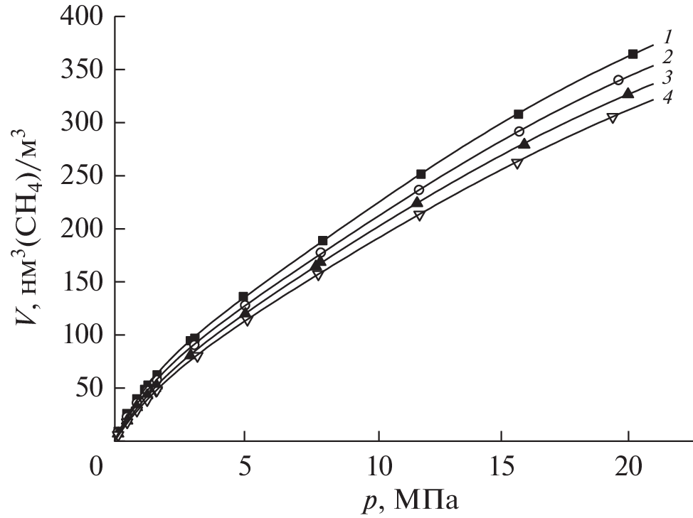 ES-103(1) microporous carbon adsorbent with specific micropore volume W0 = 0.80 cm3/g and pore width Х0 = 1.32 nm was prepared by thermochemical activation of wood waste in Н3РО4 at 1173 K. The specific BET surface of the adsorbent was SBET = 2115 m2/g. At 303 K and 20 MPa, the methane-adsorption capacity of the adsorbent reached ~22 wt %. In the main region of micropore fillings, the differential molar isosteric heats of methane adsorption gradually dropped from ~16 to 12 kJ/mol. To increase the energy of methane adsorption, it is necessary to use systems that provide a possibility additionally to increase the energy of adsorption due to the energy of adsorbate associating in micropores. At a pressure of 10 MPa, the methane volumetric density in ES-103(1) adsorbent compacted with a binder achieved 200 m3(NTP)/m3.
