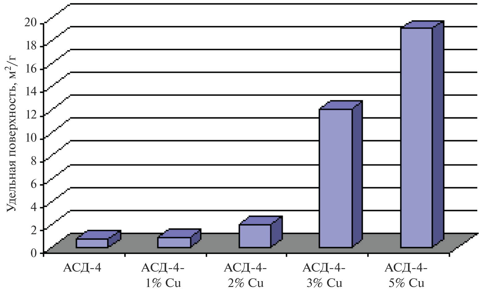 Методом низкотемпературной адсорбции при температуре 78 К, изучена адсорбция азота на порошке алюминия марки АСД-4, а также на синтезированном порошке: АСД-4 модифицированным формиатом меди в концентрациях 1, 2, 3, 5 мас. %. Изучены структурные свойства: морфология, фазовый состав продуктов взаимодействия, рассчитана удельная поверхность и пористость. Показано что при концентрации формиата меди в 1 и 2 мас. % адсорбционные характеристики полученных порошков существенно не меняются, что представляет интерес для создания защитного барьерного слоя на поверхности частиц алюминия, при этом, существенно не меняя его структурообразующие свойства. Введение модификатора в концентрации 3, 5 мас. % существенно повлияло на адсорбционные характеристики продуктов взаимодействия. Так удельная поверхность для АСД-4 + 3% Cu составила 12 м2/г, для АСД-4 + 5% 19 м2/г, тогда как удельная поверхность порошка АСД-4 составляла всего 0.7728 м2/г.
