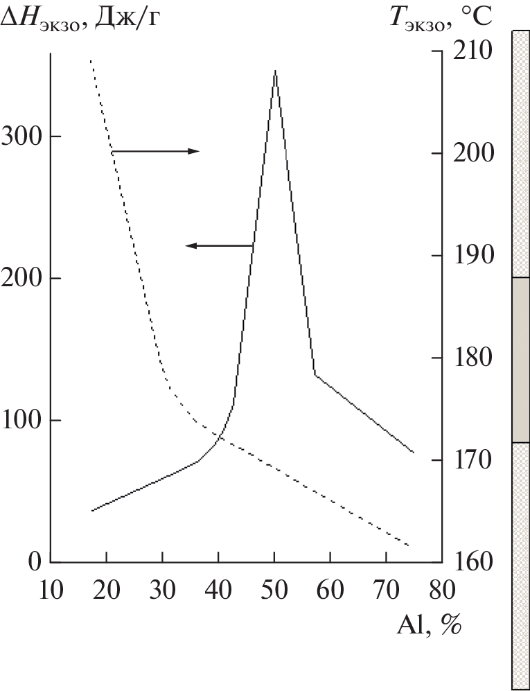 Mixtures of Al–Cu powders of various compositions were subjected to plastic deformation at a pressure of 1–4 GPa in an anvil-type high-pressure apparatus and studied by the thermomechanical method, as well as by differential scanning calorimetry (DSC) and energy dispersive X-ray spectroscopy. When deformed samples were heated, a decrease in thickness was recorded, which reached 40%. This effect depended on the material of the anvils and the pressure at which the treatment was carried out. The DSC study showed that, upon heating, an exothermic process occurs in the samples in the range of 168–180°C and a high-temperature endothermic process of aluminum melting takes place. The concentration dependences of the enthalpy of the processes had an extreme form. An electron-microscopic study found that, as a result of pressure treatment in the samples, the ratio of components changes and a new phase is formed, the amount of which increases with increasing deformation pressure, which is a characteristic feature of a chemical process.