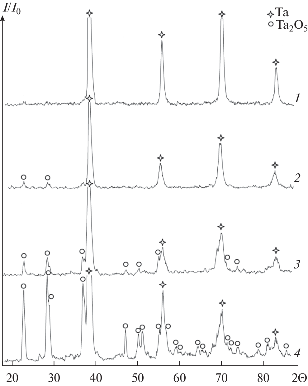 The effect of the oxygen content in tantalum powders of different natures on the leakage currents of capacitor anodes has been examined. It has been established that the leakage current in the anodes from magnesium thermal powders with a highly developed surface depends on the oxygen content in them more weakly than in anodes from powders consisting of fragmented particles, which have a smaller surface area. This is explained by the fact that, during sintering of the anodes from powders with a large specific surface, the majority of the oxygen of the natural oxide interacts with the metal with the formation of Ta2O5 particles outside the tantalum particle volume.