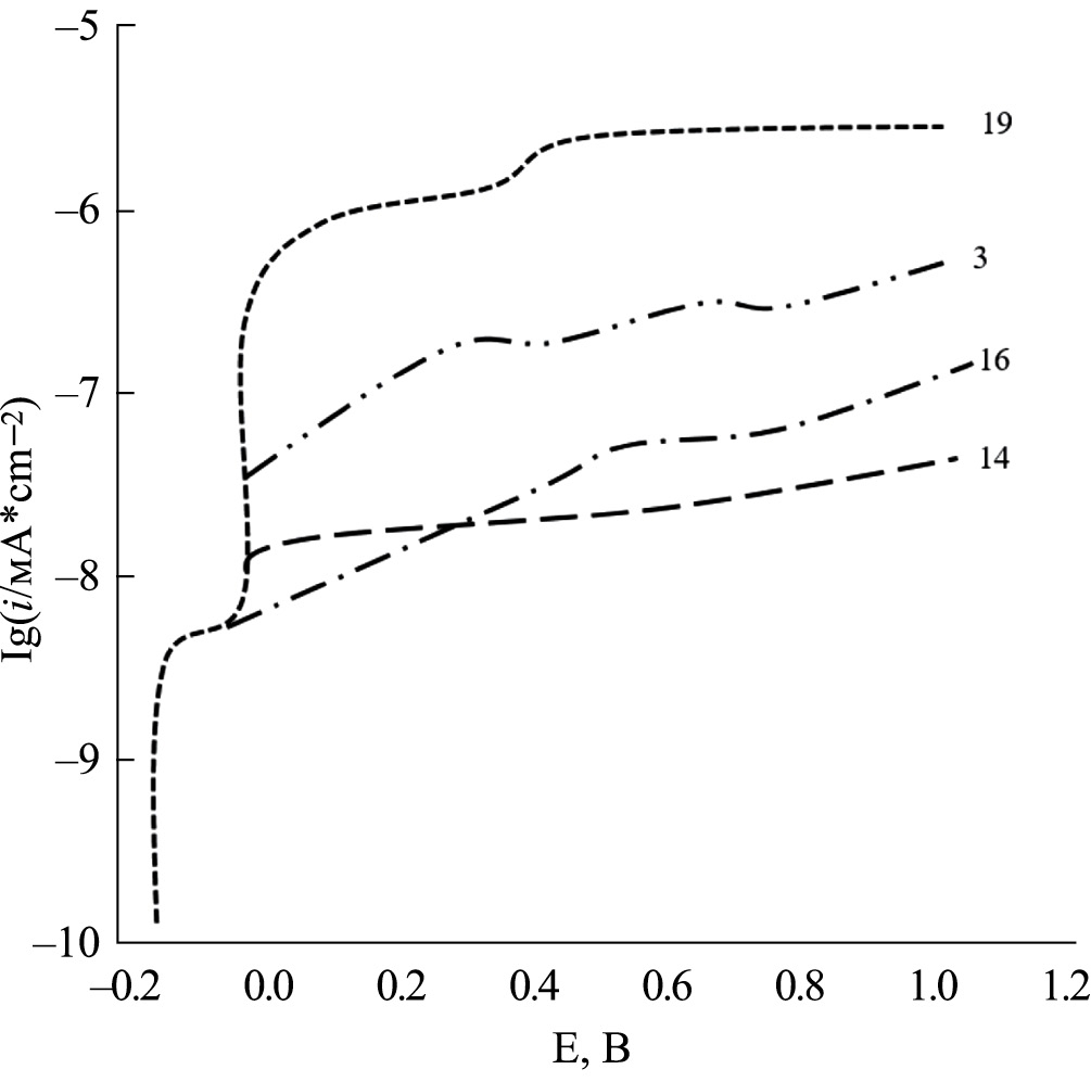ВЧИ плазменная обработка в режимах 3, 14, 16 показала высокую коррозионную стойкость. У них меньше, чем у исходного образца, плотность тока пассивации и положительный стационарный потенциал.
