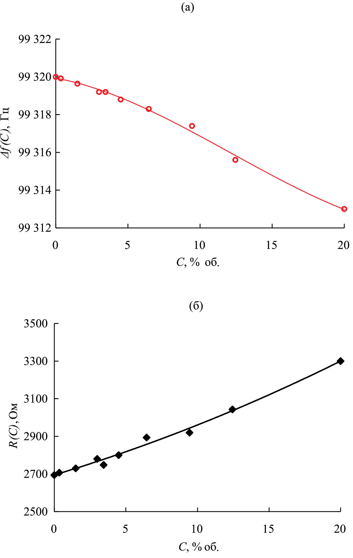 Параметры сенсоров, исследованных в работе, приведены в табл. 1. Частота и сопротивление резонаторов до присоединения к ним адсорбентов находились в пределах 100 ± 2 кГц и 650–900 Ом.