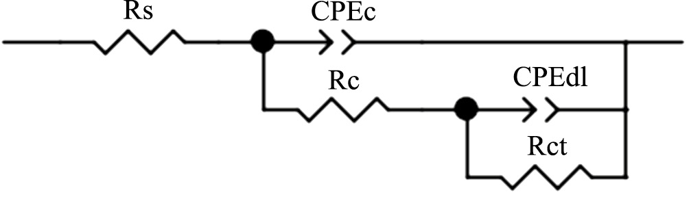 Рис. 8. Эквивалентная электрическая схема: Rs – сопротивление электролита; Rc – сопротивление слоя, образуемого покрытием; Rct – сопротивление переноса заряда в окислительно-восстановительных реакциях на границе металл-электролит; CPEc – емкость покрытия и CPEdl – емкость двойного слоя на границе металл–электролит.