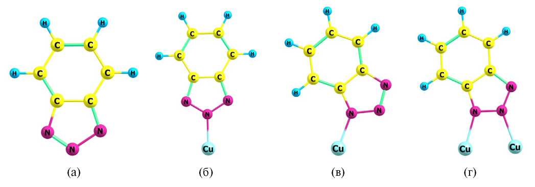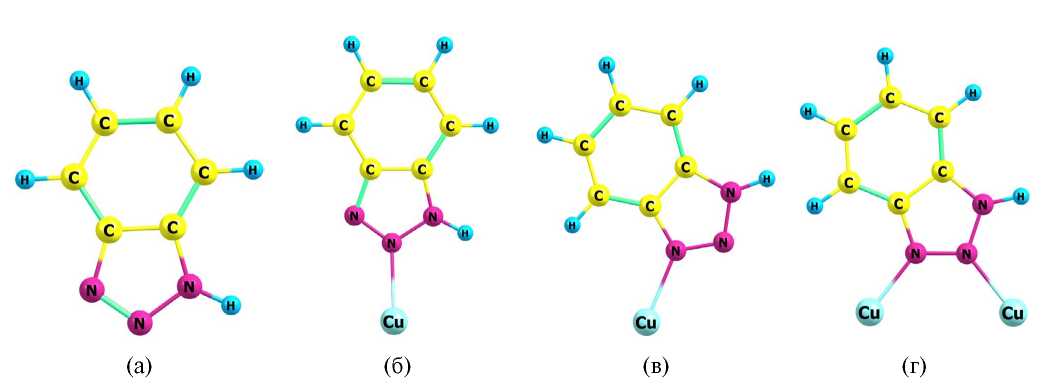 В работах [32, 100] предложены ab initio DFT-модели адсорбции бензотриазола на поверхности меди. Расчеты в рамках теории функционала плотности (DFT) позволяют воспроизвести КР-спектры SERS молекул, адсорбированных на наноструктурированных металлических поверхностях. Это полезно для понимания механизма закрепления и прочности связи между молекулой адсорбата и металлом, а также структурных и электронных модификаций адсорбированной молекулы [101].